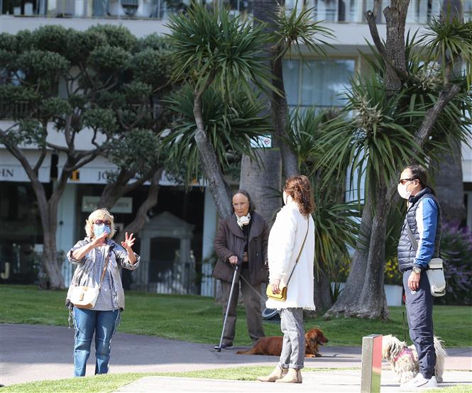 Người dân đeo khẩu trang phòng lây nhiễm COVID-19 tại Cannes, Pháp ngày 18/4/2020. Ảnh: THX/ TTXVN