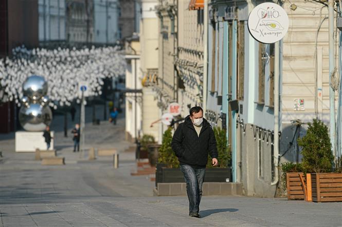 Người dân đeo khẩu trang phòng lây nhiễm COVID-19 tại Moskva, Nga ngày 13/4/2020. Ảnh: THX/ TTXVN