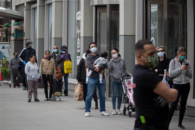 Người dân đeo khẩu trang phòng lây nhiễm COVID-19 khi xếp hàng bên ngoài một cửa hàng ở Brooklyn, New York, Mỹ ngày 14/4/2020. Ảnh: THX/ TTXVN