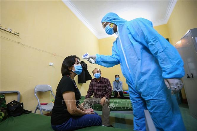Kiểm tra sức khoẻ cho người dân ở khu cách ly tập trung phòng dịch COVID-19. Ảnh: TTXVN