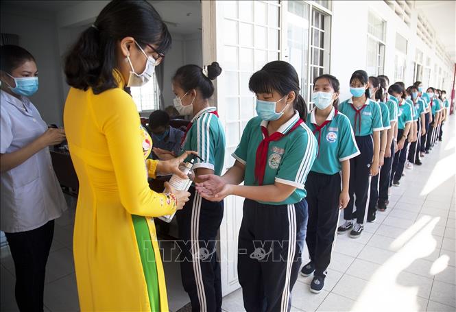 Đảm bảo phòng chống dịch COVID-19 khi học sinh trở lại trường học. Ảnh: TTXVN