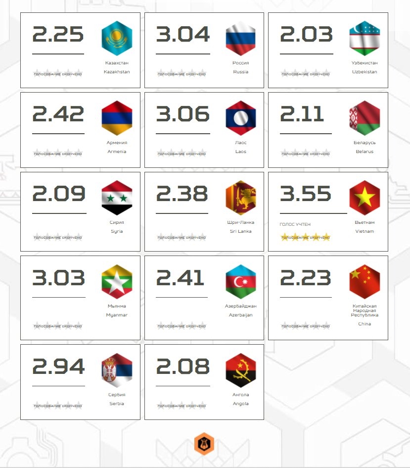 Theo đó: Có 20 nước tham gia cuộc thi với các hoạt động sáng tạo văn hoá gồm: Nga, Trung Quốc, Việt Nam, Lào, Myanmar, Ấn Độ, Belarus, Uzbekistan, Azerbaijan, Kazakhstan, Serbia, Iran, Venezuela, Syria, Armenia, Tajikistan, Angola, Sri Lanka, Mali, Burkina Faso. Trong đó, có 13 nước thi đủ các giai đoạn. Kết quả chung của cuộc thi: Vị trí đầu tiên thuộc về đội tuyển nước chủ nhà Nga, vị trí thứ hai thuộc về đội tuyển Trung Quốc, hai đội tuyển cùng xếp thứ ba là Belarus và Kazakhstan.