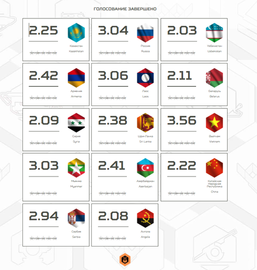 Theo đó, đúng 17 giờ 5 phút ngày 28-8, cổng bình chọn cho các tiết mục biểu diễn trực tuyến của các đội tuyển tham gia Cuộc thi “Đội quân văn hóa” trong khuôn khổ Army Games 2021 tại Liên bang Nga đã được mở tại địa chỉ https://golosovanie-ac.mil.ru/ để người xem trên toàn thế giới bình chọn trực tiếp. Sau hai tiếng bình chọn, BTC đã đưa clip biểu diễn của các đội tuyển lên hệ thống để bạn đọc tiếp tục bình chọn đến hết ngày 30-8 theo thang điểm 5 sao.
