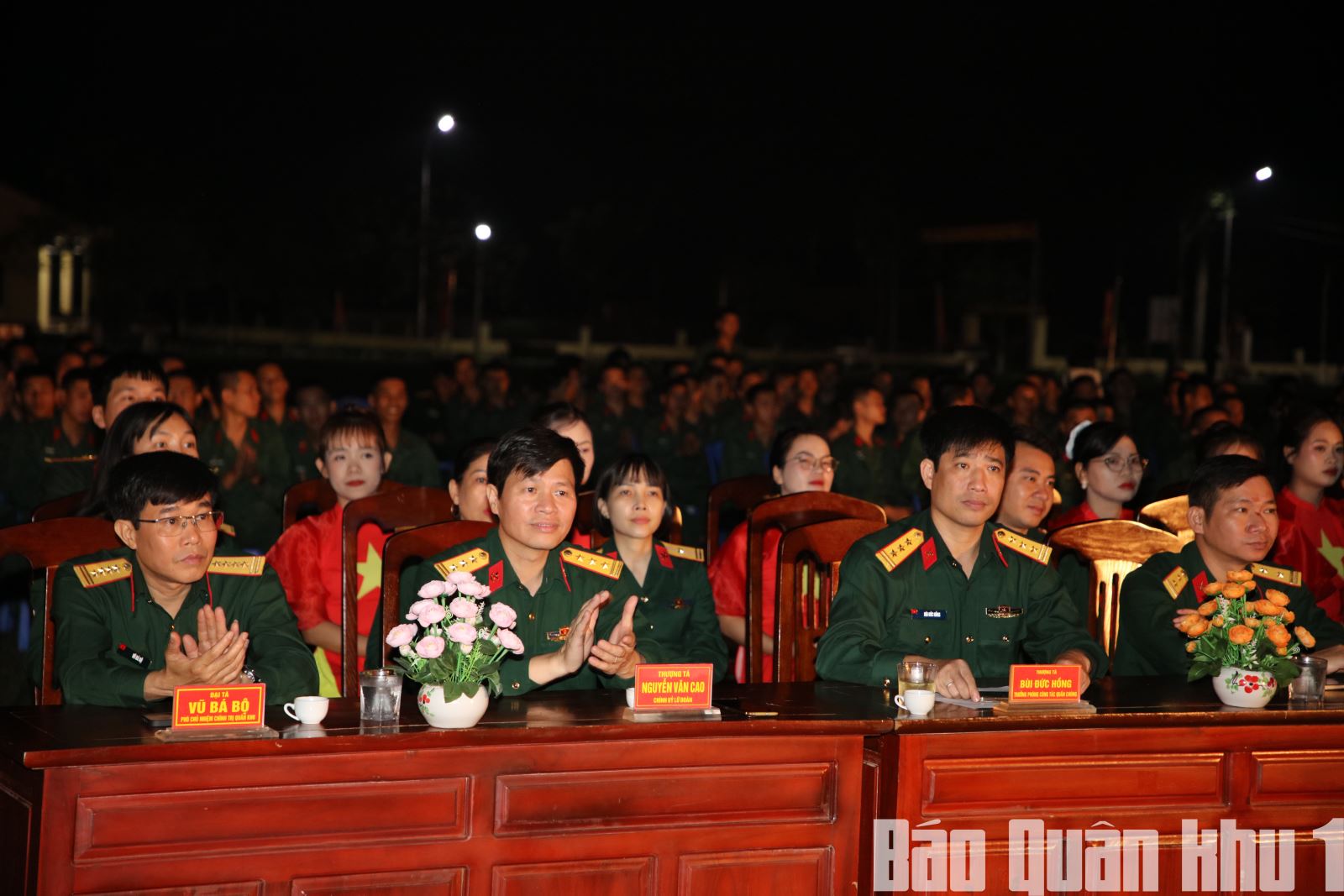Đại tá Vũ Bá Bộ, Phó Chủ nhiệm Chính trị Quân khu tham gia đêm lửa trại cùng đoàn viên Đoàn cơ sở Lữ đoàn 575.