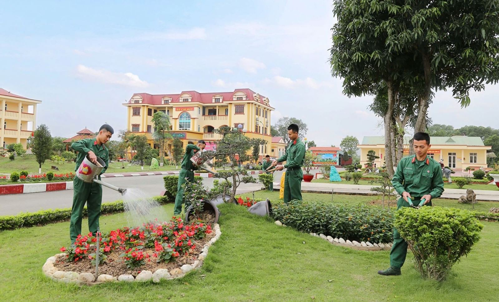 Xây dựng cảnh quan doanh trại góp phần chăm lo đời sống văn hóa tinh thần.