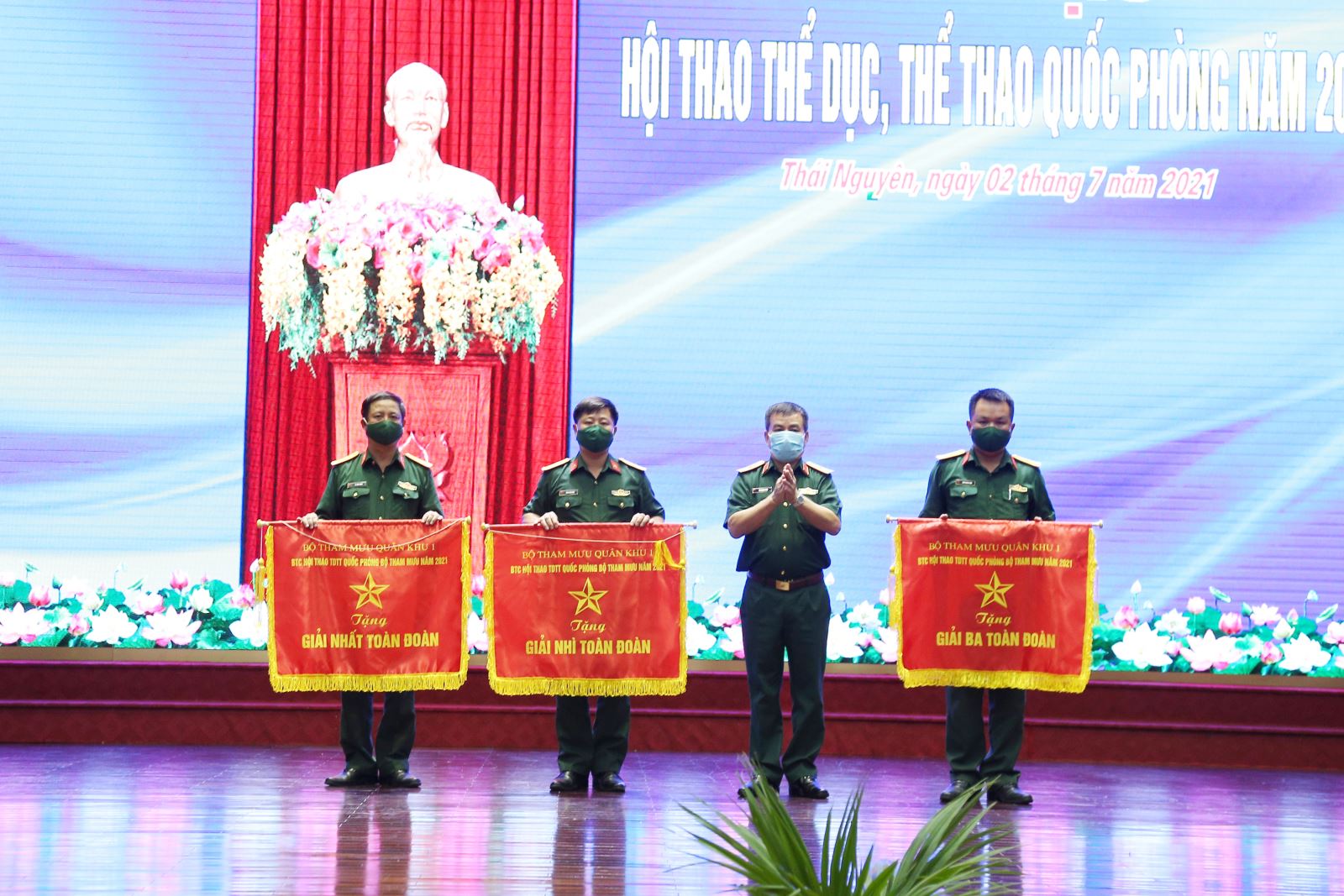 Thiếu tướng Hà Quang Vinh, Phó tham mưu trưởng Quân khu trao giải toàn đoàn cho các đơn vị.