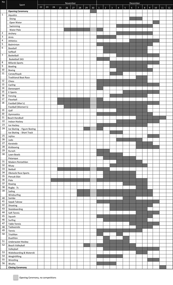 Lịch thi đấu các môn thể thao tại SEA Games 30