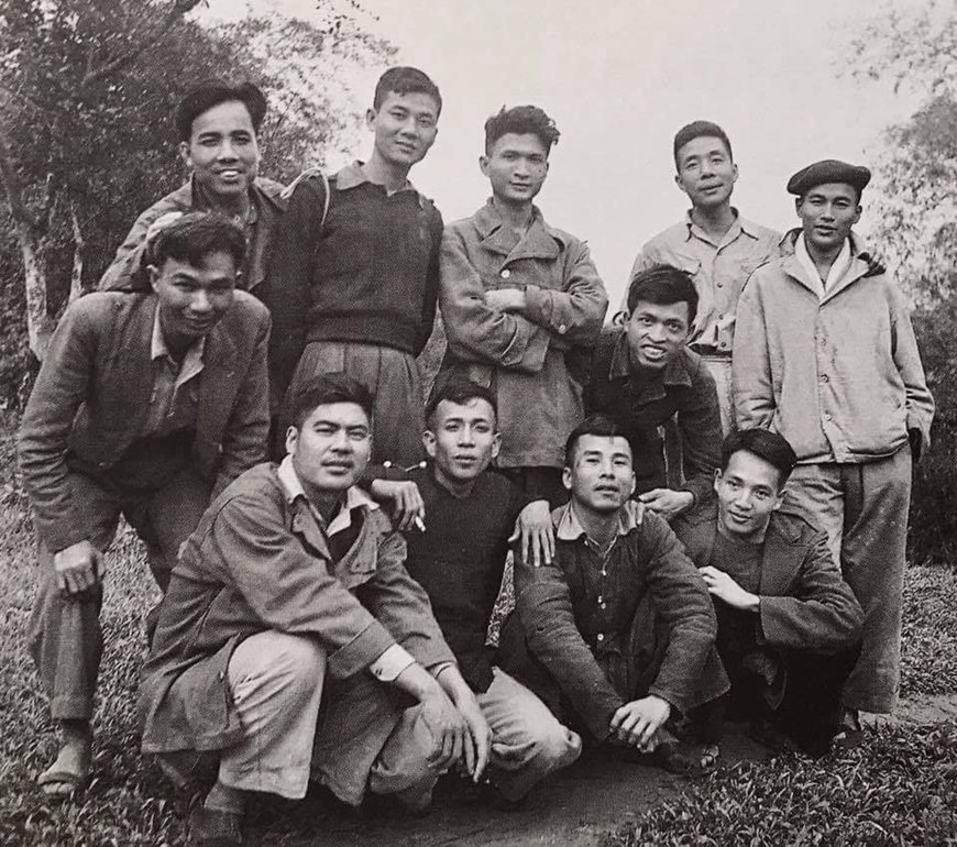 Các văn nghệ sĩ cách mạng tiêu biểu trong kháng chiến chống Pháp. Từ phải qua trái: Tô Hoài, Nguyễn Huy Tưởng, Hoàng Trung Thông, Chế Lan Viên, Nguyễn Xuân Sanh, Học Phi, Nguyễn Đỗ Cung (hàng trên); Nam Cao, Nguyên Hồng, Kim Lân, Nguyễn Đình Thi (hàng dưới). Ảnh tư liệu