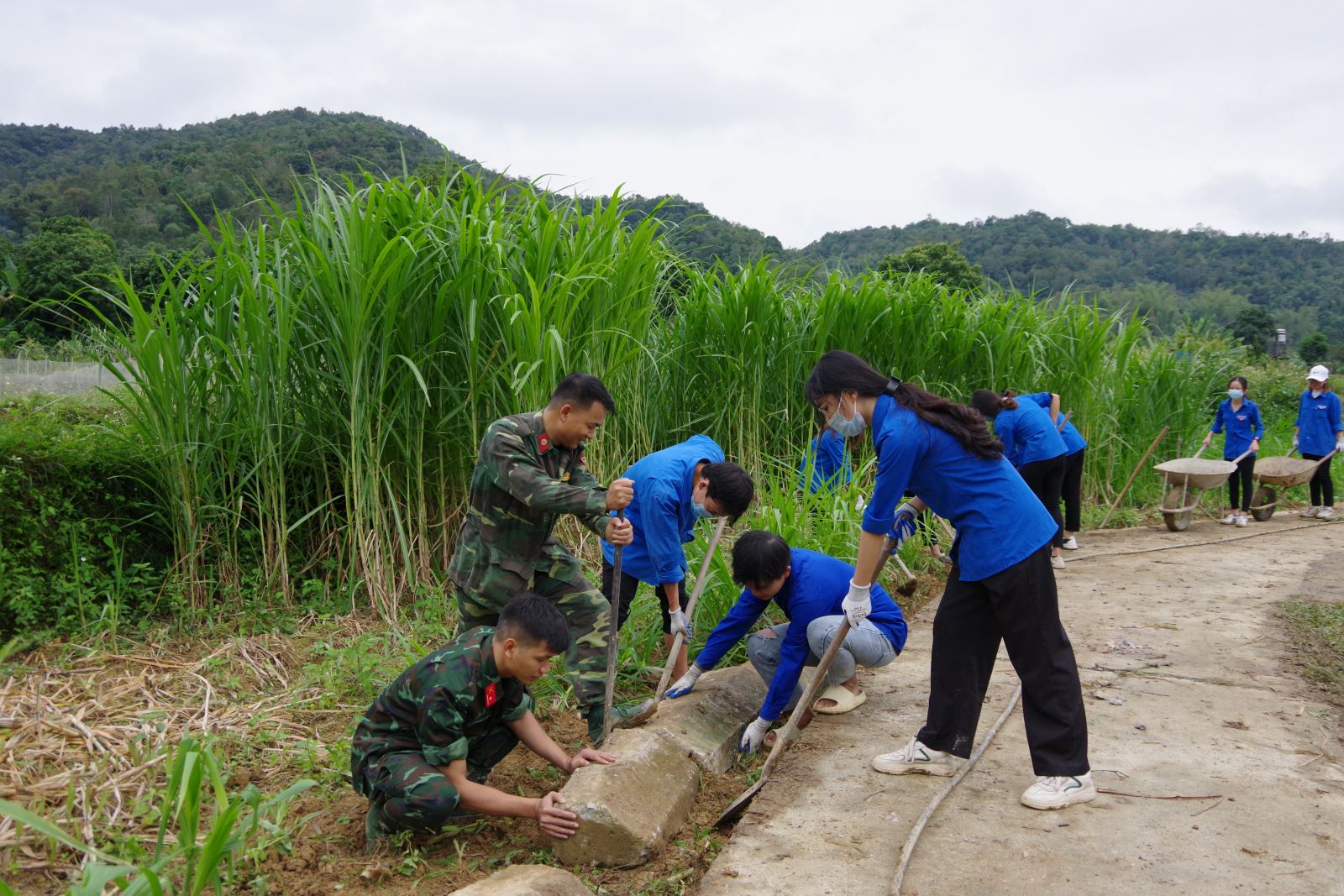 Tuổi trẻ Bộ CHQS tỉnh Cao Bằng phối hợp các đơn vị giúp nhân dân xã Minh Tâm, huyện Nguyên Bình làm đường nội đồng.
