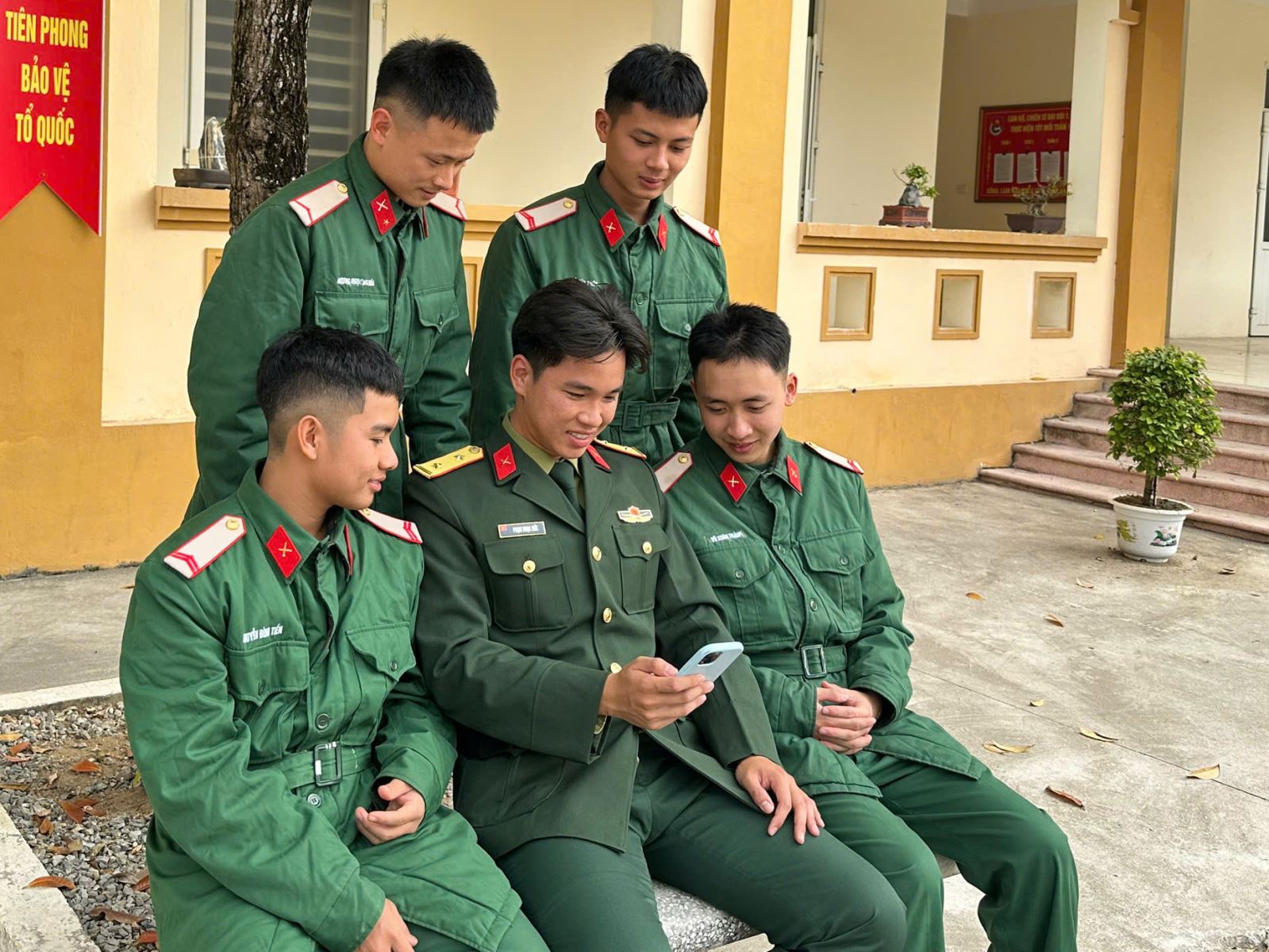 Cán bộ Tiểu đoàn 1 (Trung đoàn 833) sử dụng điện thoại ghi hình, chụp ảnh các hoạt động hàng ngày của chiến sĩ