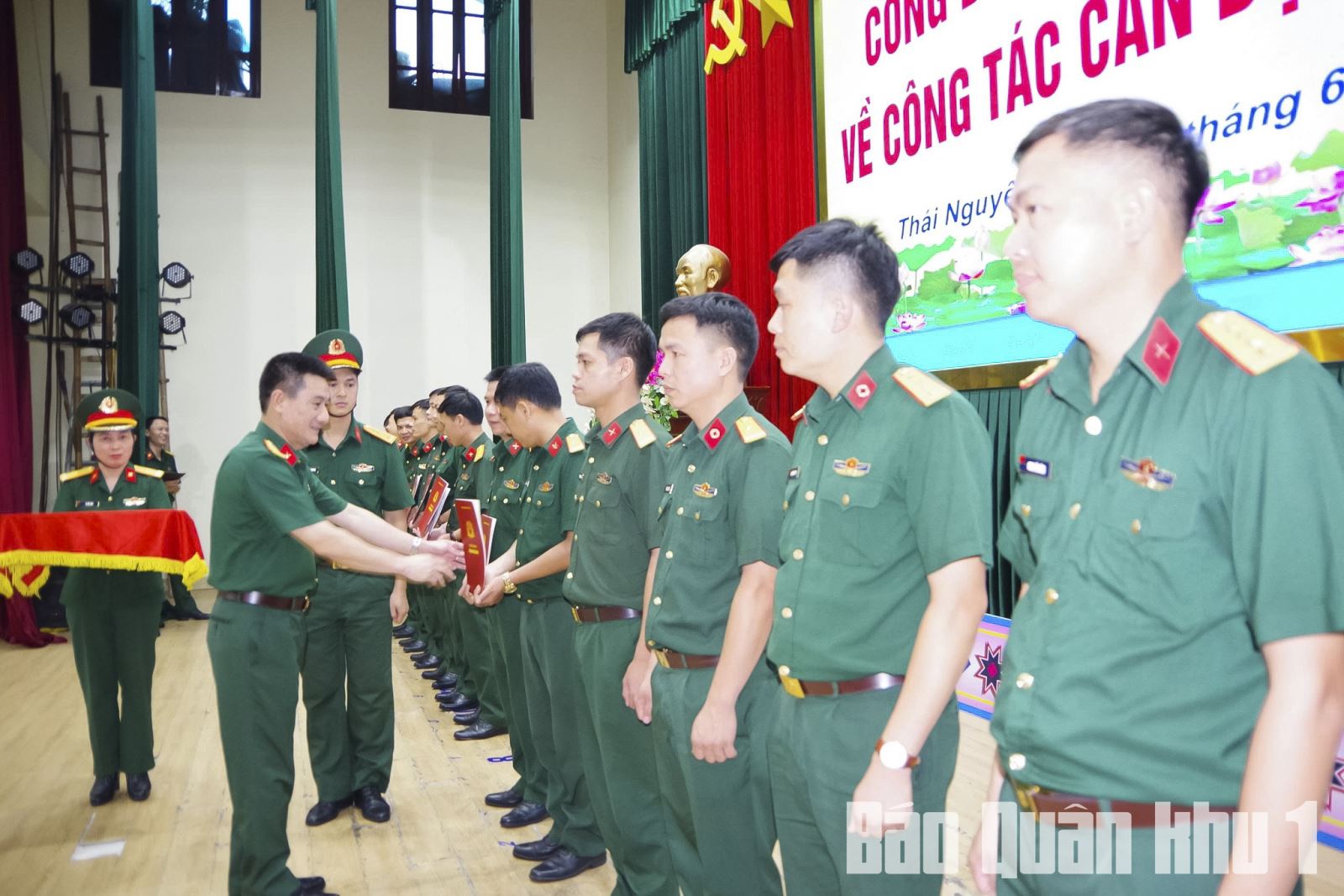 Đại tá Ngô Tuấn Anh, Uỷ viên Ban Thường vụ Tỉnh ủy, Chỉ huy trưởng Bộ CHQS tỉnh trao Quyết định nhân sự cho cán bộ thuộc quyền. Ảnh: Duy Đức