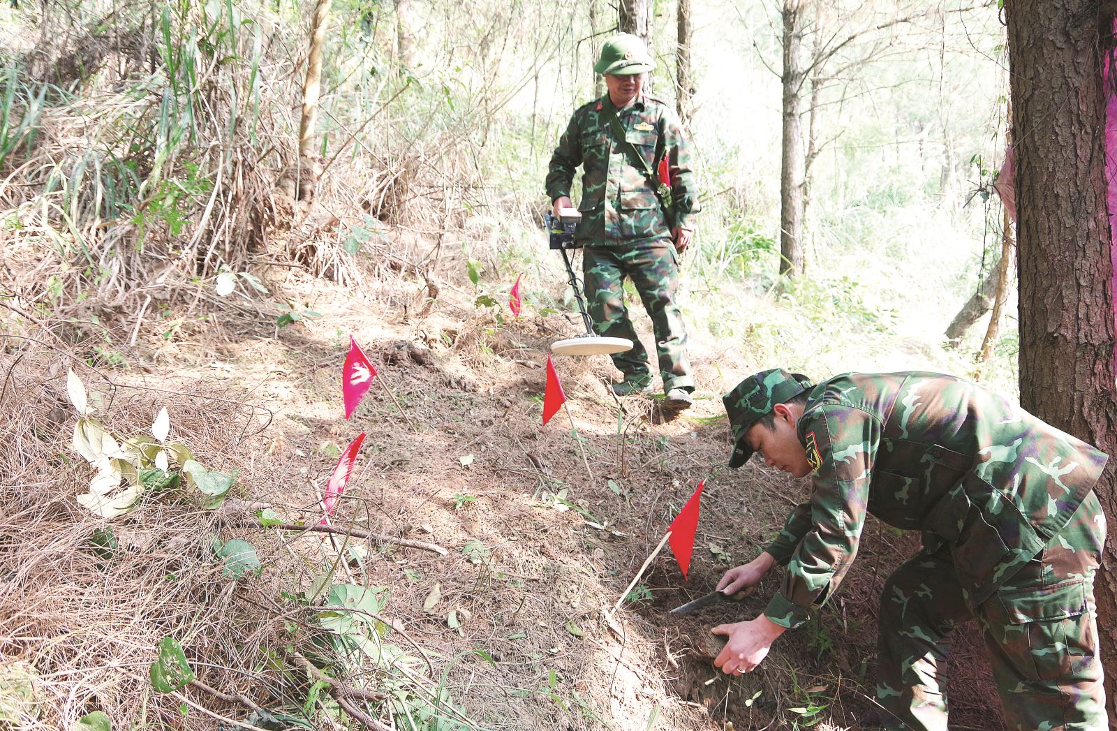 Lực lượng Công binh Bộ CHQS tỉnh Lạng Sơn tham gia rà phá mìn, vật cản tại xã Thanh Lòa, huyện Cao Lộc, tỉnh Lạng Sơn. Ảnh: Dương Nguyên