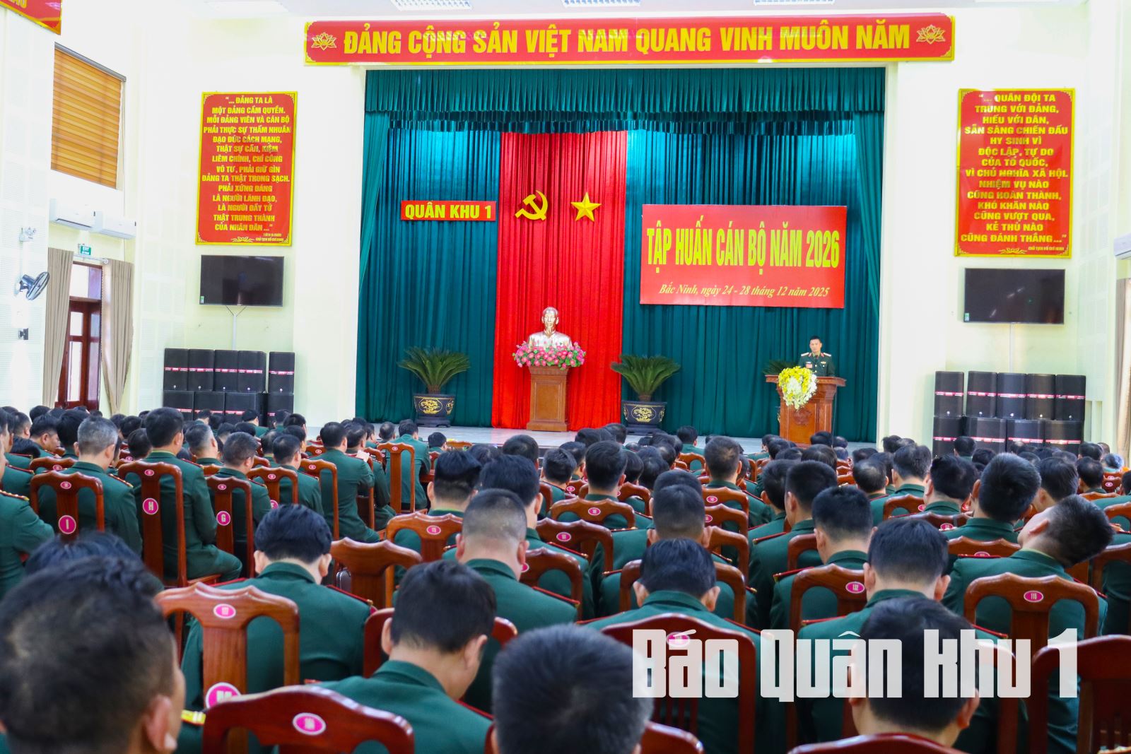 Tập huấn cán bộ năm 2026 được tổ chức từ ngày 24-12, trong điều kiện yêu cầu nhiệm vụ ngày càng cao, nhằm thống nhất nhận thức, phương pháp và nâng cao năng lực tổ chức thực hiện nhiệm vụ quân sự, quốc phòng cho đội ngũ cán bộ các cấp trong LLVT Quân khu. Trong thời gian tập huấn, các học viên đã tập trung nghiên cứu, tiếp thu nhiều nội dung mới, trọng tâm, sát với thực tiễn huấn luyện, sẵn sàng chiến đấu của đơn vị.