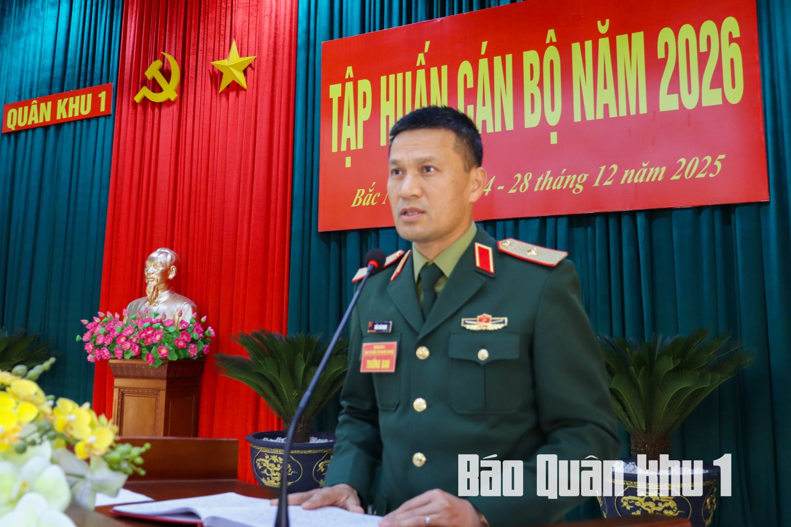 Thiếu tướng Trần Xuân Mạnh, Phó Tư lệnh, Tham mưu trưởng Quân khu phát biểu tại bế mạc tập huấn cán bộ năm 2026.